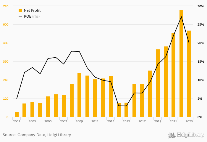 The bank generated its shareholders an average return on equity of 19.8% in the last five years with maximum at 27.1% and minimum at 14.2%