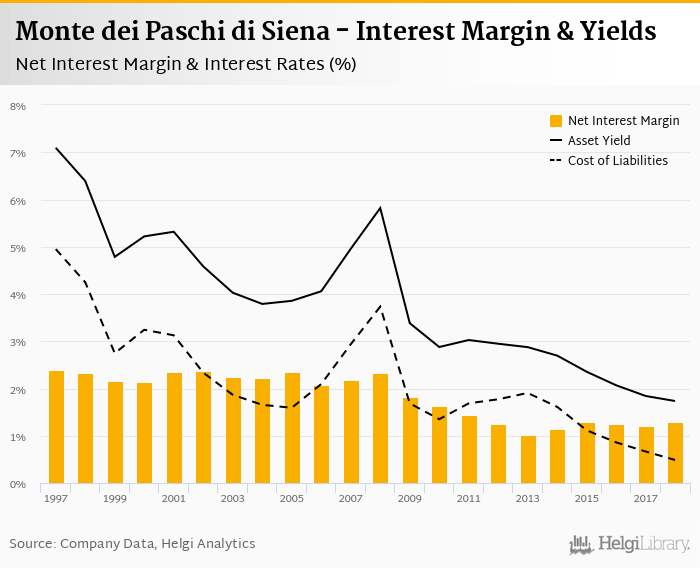 Monte dei Paschi di Siena's net interest margin amounted to 1.28% in 2018, up from 1.21% compared to the previous year.