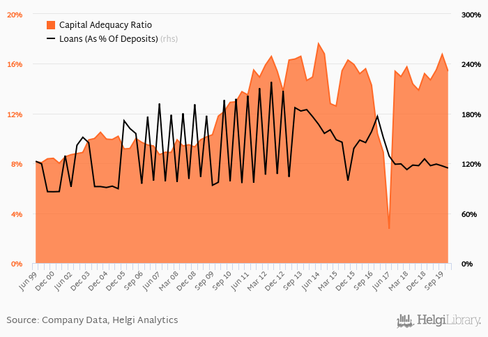 Bank's loan to deposit ratio reached 114% at the end of 4Q2019, down from 125% when compared to the same period of last year.