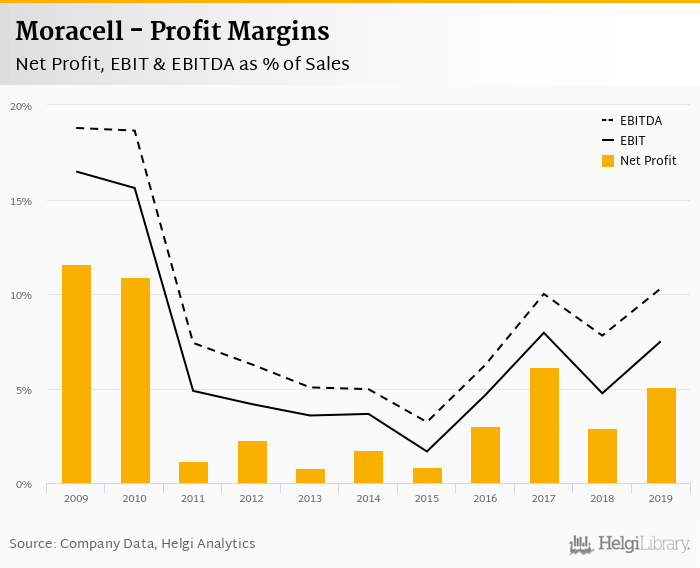 Moracell made a net profit of CZK 29.1 mil with revenues of CZK 573 mil in 2019, up by 129% and up by 31.8%, respectively, compared to the previous year.