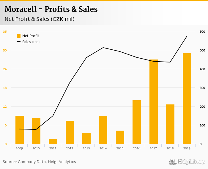 Moracell made a net profit of CZK 29.1 mil in 2019, up 129% compared to the previous year. Total sales reached CZK 573 mil, which is up 31.8% when compared to the previous year.
