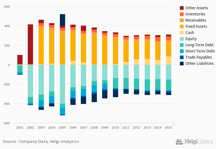 Net debt against equity is down 0.530 pp from five years ago (0.755). The ratio against EBITDA increased from -32.4x seen in 2010 to 0.660x.