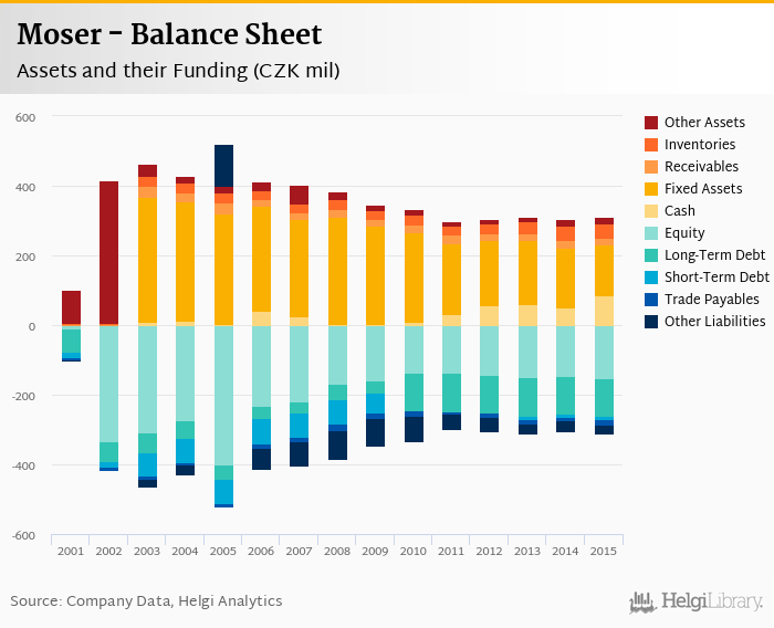 Moser's total assets reached CZK 312 mil at the end of 2015, up 2.69% compared to the previous year.