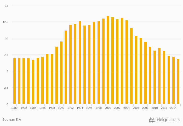 Historically, motor gasoline consumption in Luxembourg reached an all time high of 13.4 '000 bpd in 2000 and an all time low of 6.77 '000 bpd in 1984. When compared to Luxembourg's main peers, motor gasoline consumption in Belgium amounted to 31.3 '000 bpd, 164 '000 bpd in France, 422 '000 bpd in Germany and 90.2 '000 bpd in Netherlands in 2015.