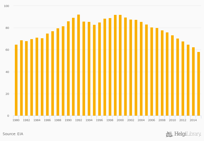 Motor gasoline consumption fell 6.76% to 58.2 '000 bpd in Switzerland in 2015, according to EIA.