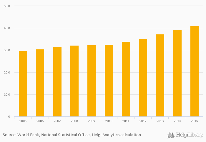 Motor vehicles per 1,000 people rose 4.46% to 40.9 vehicles in El Salvador in 2015, according to the National Statistical Office.