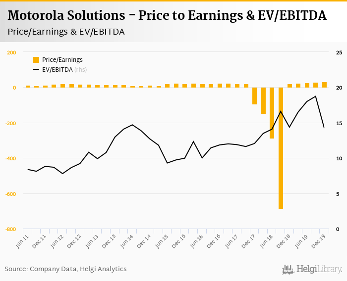 Motorola Solutions stock traded at USD 156 per share at the end 4Q2019 translating into a market capitalization of USD 27,474 mil.
