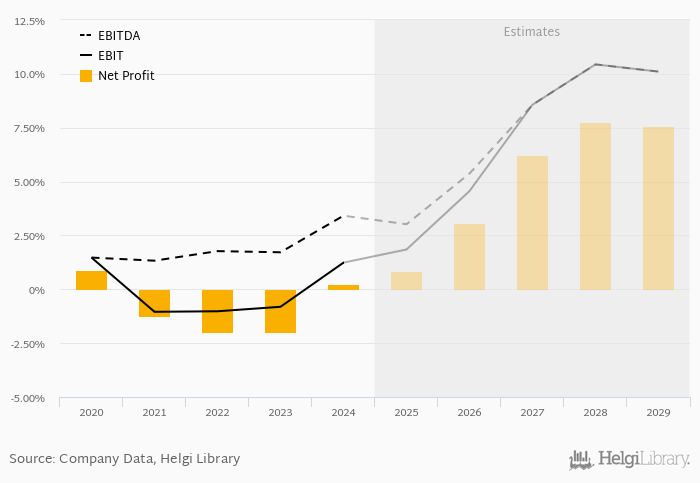 On the operating level, the EBITDA margin reached 3.42% and EBIT amounted to 1.24% of sales in 2024.