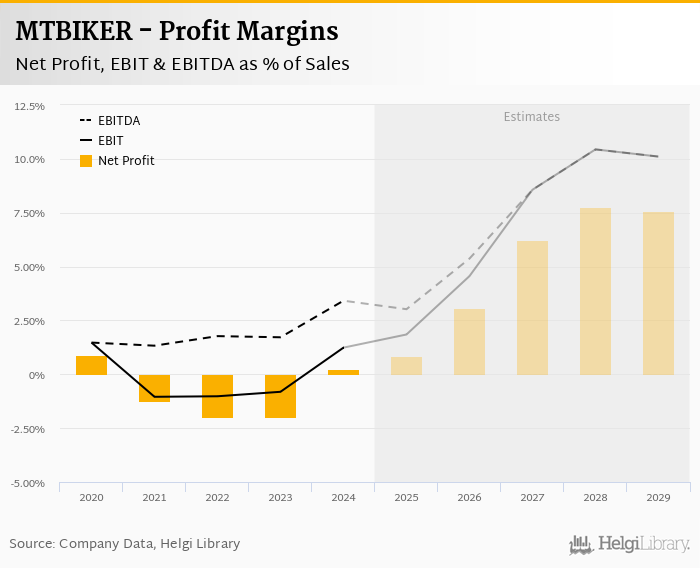 MTBIKER made a net profit of EUR 0.054 mil with revenues of EUR 23.6 mil in 2024, up by 114% and up by 25.3%, respectively, compared to the previous year.