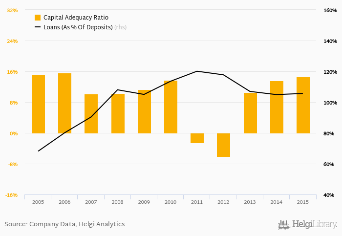 Bank's loan to deposit ratio reached 106% at the end of 2015, up from 105% when compared to the previous year. Some 10 years ago, loan to deposit ratio of the bank amounted to 68.1%.
