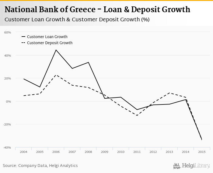 At the end of 2015, National Bank of Greece's loans accounted for 106% of total deposits and 40.8% of total assets.