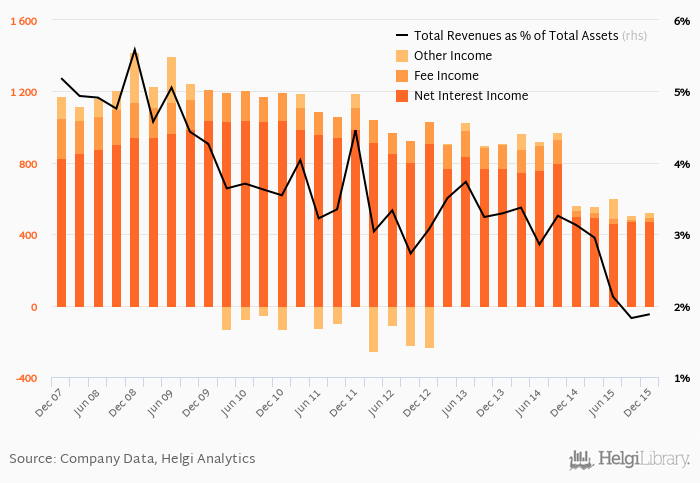 Bank's total revenues accounted for 1.88% total assets in the fourth quarter of 2015, down from 3.13% a year earlier.