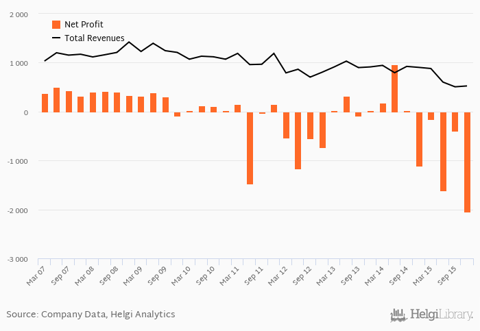 Historically, the bank’s net profit reached an all time high of EUR 965 mil in 2Q2014 and an all time low of EUR -2,050 mil in 4Q2015. The average profit in the last six quarters amounted to EUR -884 mil.