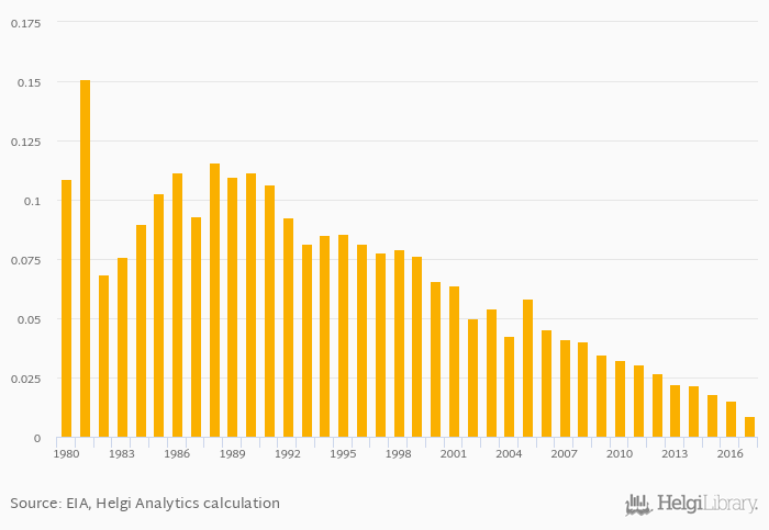 Natural gas reserves as a share of worldwide reserves fell 41.3% to 0.009% in Denmark in 2017, according to EIA.