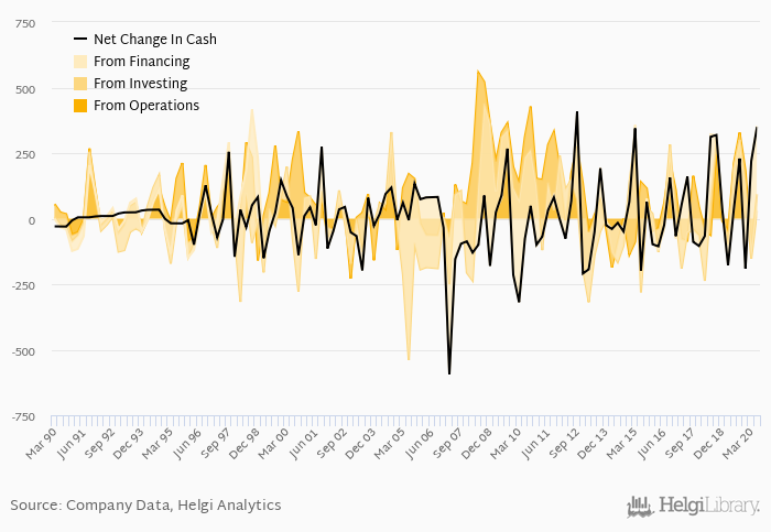Cash from financing amounted to USD 324 mil, so the company generated USD 350 mil net cash in 2Q2020.