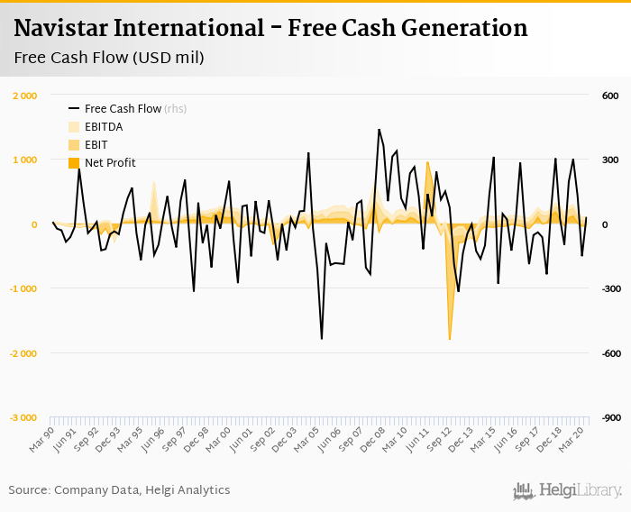 Navistar International made a net profit of USD -37.2 mil with revenues of USD 1,752 mil in 2Q2020, down by 143% and down by 42.1%, respectively, compared to the previous year. This translates into a net margin of -2.12%.