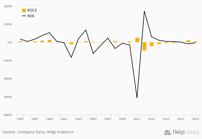 The result implies a return on equity of -4.61% and a return on invested capital of 4.53% in 2019. That is compared to an average of -1.83% and 1.75% over the last five years.