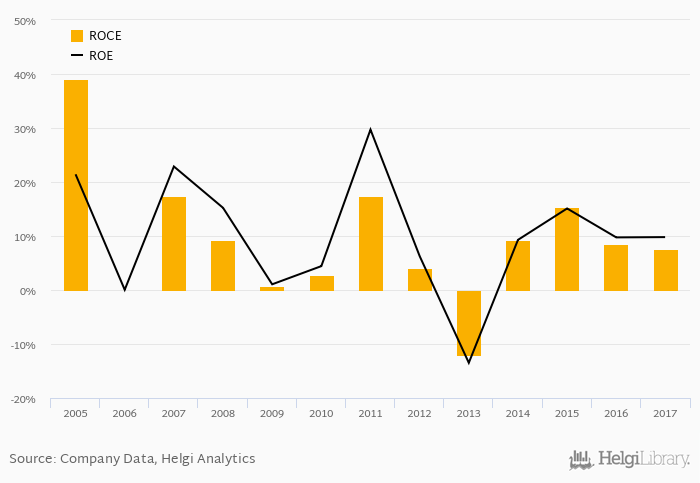 The result implies a return on equity of 9.79% and a return on invested capital of 7.50% in 2017. That is compared to an average of 6.09% and 5.70% over the last five years.