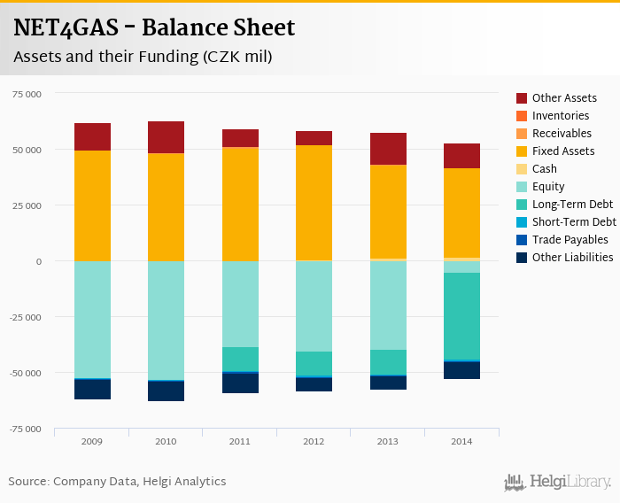 NET4GAS's total assets reached CZK 52,608 mil at the end of 2014, down 8.67% compared to the previous year.