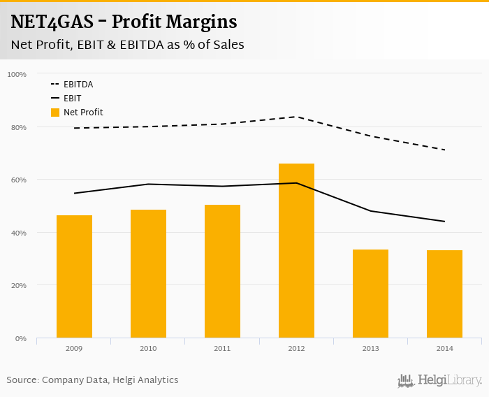 On the operating level, the EBITDA margin reached 71.0% and EBIT amounted to 43.9% of sales in 2014.