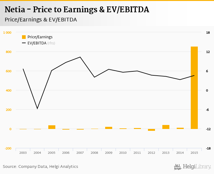 Netia stock traded at PLN 5.40 per share at the end 2015 translating into a market capitalization of USD 483 mil.