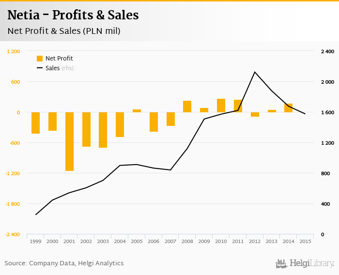 As far as Netia's peers are concerned, Orange Polska (TPSA) posted a net profit and sales of PLN 254 mil and PLN 11,840 mil in 2015, O2 Czech Republic generated a net profit of CZK 6,799 mil (with sales of CZK 37,562 mil), and Telekom Austria netted USD EUR 393 mil (sales of EUR 4,027 mil).