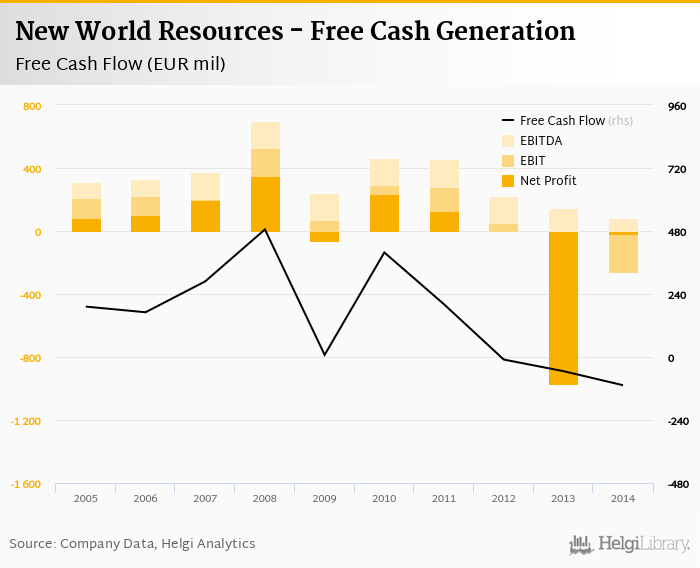 New World Resources made a net profit of EUR -21.1 mil with revenues of EUR 676 mil in 2014, up by 97.8% and down by 20.5%, respectively, compared to the previous year. This translates into a net margin of -3.12%.