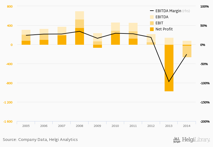 Historically, between 2005 - 2014, the firm’s net profit reached a high of EUR 352 mil in 2008 and a low of EUR -970 mil in 2013. Since 2009, the firm's net profit has increased 65.8% or -19.3% a year on average.