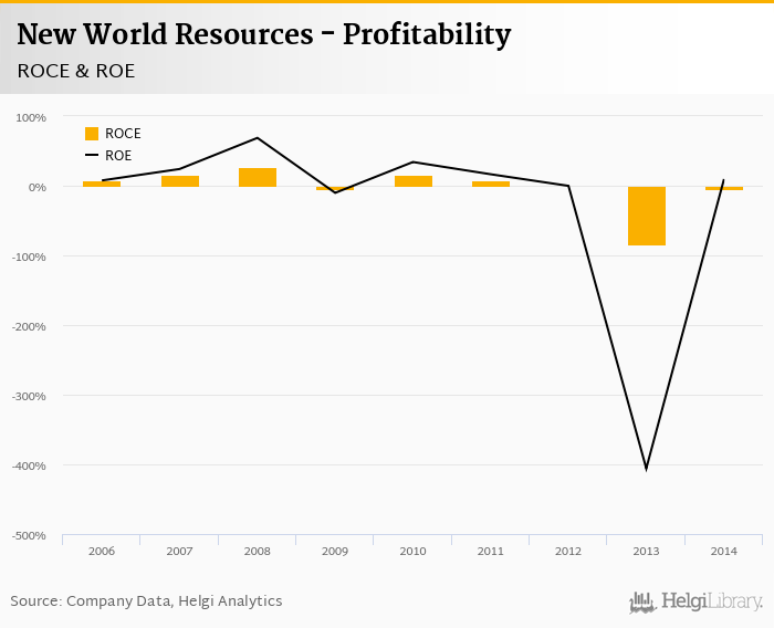 As far as New World Resources's peers are concerned, Bogdanka generated ROE of 11.0% and ROCE of 8.12% in 2014. Czech Coal's profitability reached 494% and -73.0%, respectively. JSW operated with -8.44% and -5.41% returns in 2014.