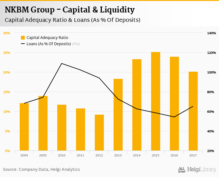 Comparing NKBM Group with its closest peers, Nova Ljubljanska banka ended the year 2017 with a capital adequacy ratio at 15.9% and loans to deposits of 70.8%, UniCredit Bank Slovenia with 18.0% and 94.9% respectively and SKB Banka some 13.3% in terms of capital adequacy and 97.5% of loans to deposits at the end of 2017.