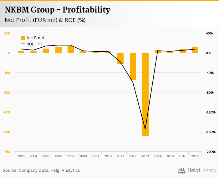 NKBM Group made a net profit of EUR 47.8 mil in 2017, up 58.6% compared to the previous year. This implies a return on equity of 6.93%.