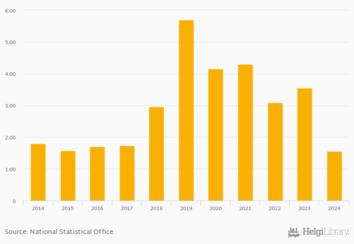 Historically, non-performing loans as a share of bank loans in Argentina reached an all time high of 5.70% in 2019 and an all time low of 1.56% in 2024.