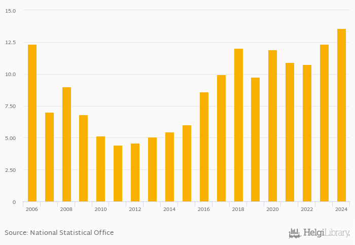 Historically, non-performing loans as a share of bank loans in Kenya reached an all time high of 13.6% in 2024 and an all time low of 4.42% in 2011.