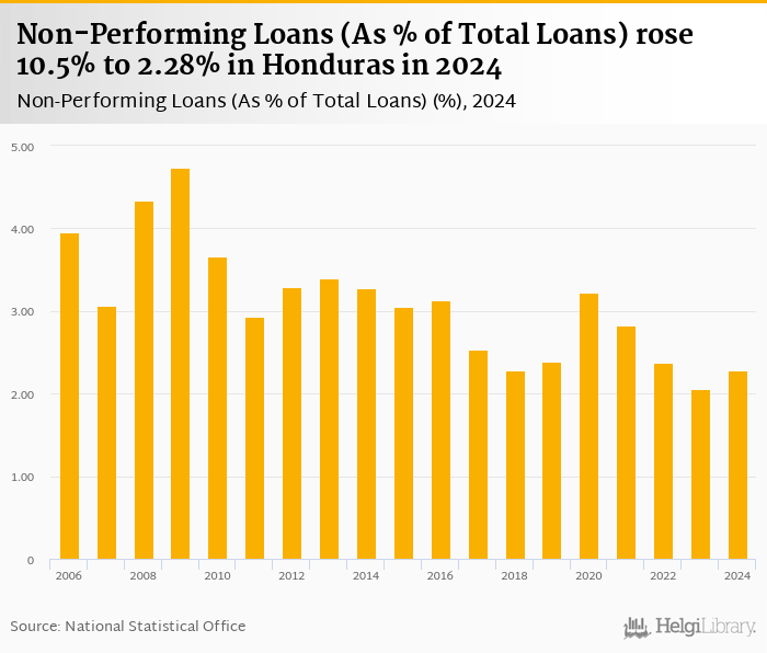 Non-performing loans as a share of bank loans rose 10.5% to 2.28% in Honduras in 2024, according to the National Central Bank.