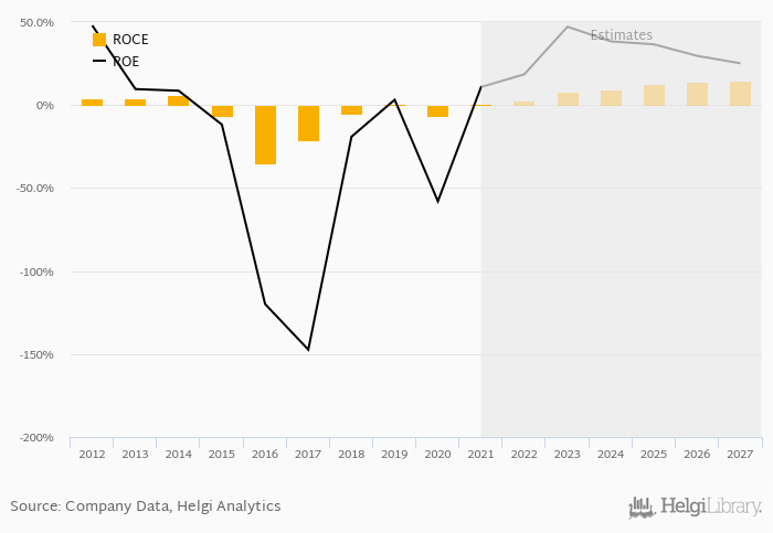 The result implies a return on equity of 10.9% and a return on invested capital of 1.12% in 2021. That is compared to an average of -42.1% and -6.29% over the last five years.