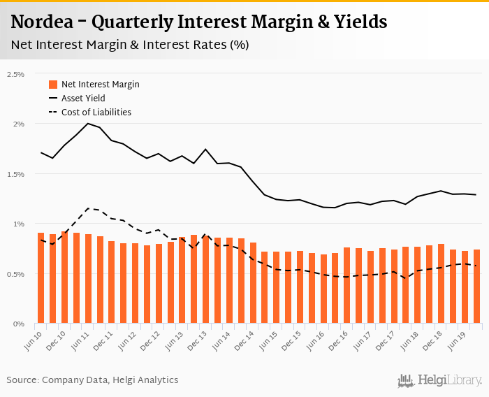 Nordea's net interest margin amounted to 0.741% in the third quarter of 2019, up from 0.730% when compared to the previous quarter.