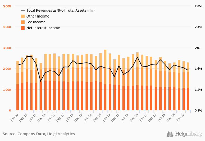 Bank's total revenues accounted for 1.56% total assets in the third quarter of 2019, down from 1.57% a year earlier.
