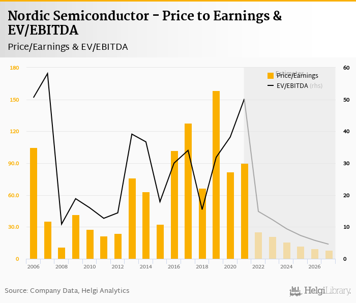 Nordic Semiconductor stock traded at USD 3.33 per share at the end 2021 translating into a market capitalization of USD 6,514 mil.