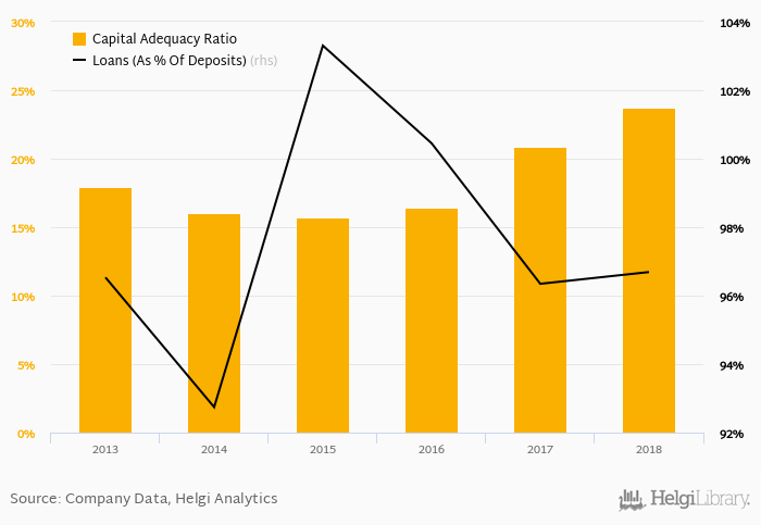 Bank's loan to deposit ratio reached 96.7% at the end of 2018, up from 96.3% when compared to the previous year.