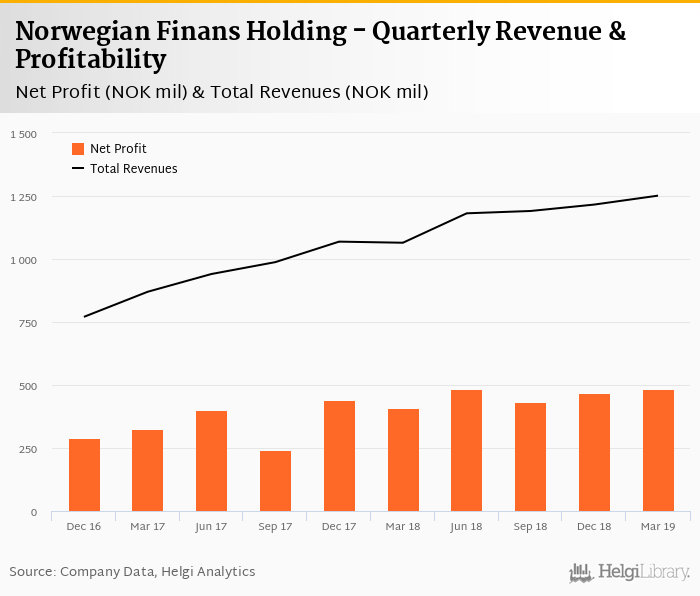 Norwegian Finans Holding made a net profit of NOK 483 mil under revenues of NOK 1,251 mil in the first quarter of 2019, up 17.7% and 17.6% respectively when compared to the same period last year.