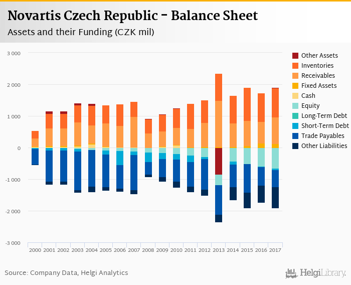 Novartis Czech Republic's total assets reached CZK 1,898 mil at the end of 2017, up 9.89% compared to the previous year.