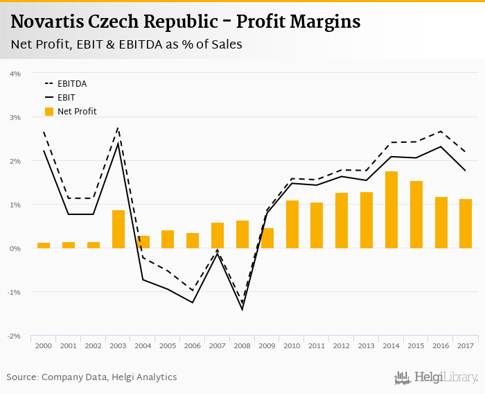 Novartis Czech Republic made a net profit of CZK 71.0 mil with revenues of CZK 6,312 mil in 2017, down by 6.08% and down by 1.25%, respectively, compared to the previous year.