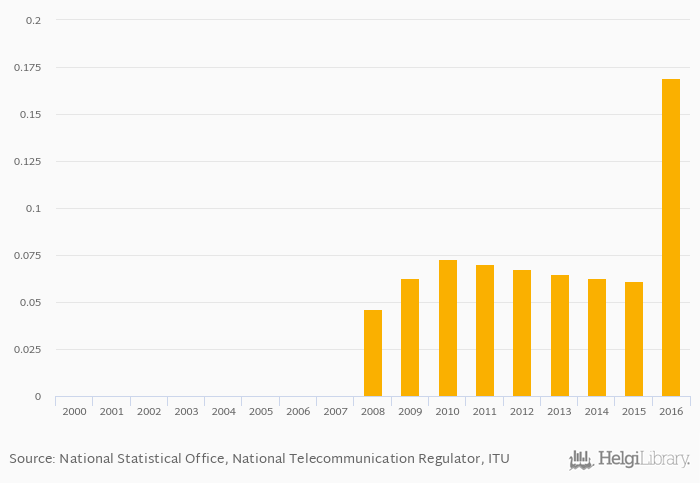 Number of fixed broadband internet connections rose 177% to 0.169 mil in Libya in 2016, according to World Bank.