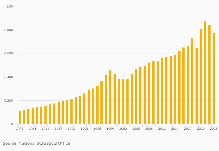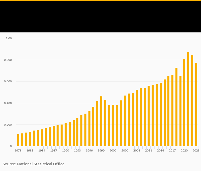 Number of fixed lines fell 8.18% to 0.774 mil in Panama in 2023, according to World Bank.