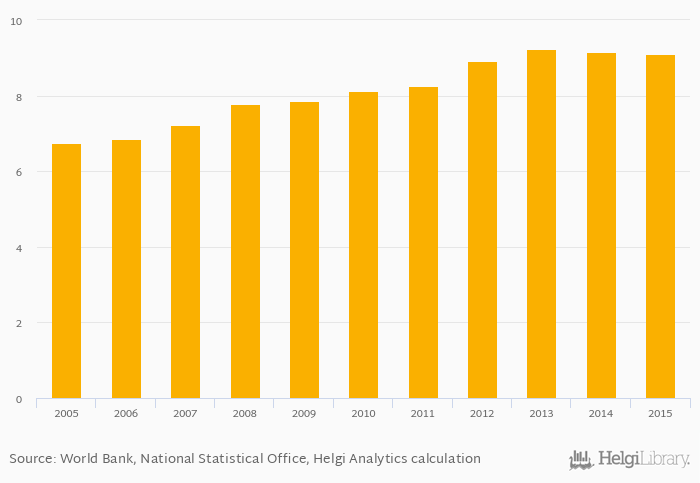 | Ukraine | mil | ... | ... | ... | ... | ... | ... | ... | ... | ... | ... | 7.87 | 8.13 | 8.26 | 8.91 | 9.23 |