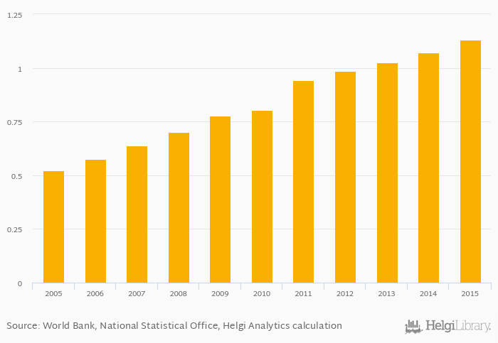 Number of motor vehicles rose 5.61% to 1.13 mil in Jordan in 2015, according to the National Statistical Office.