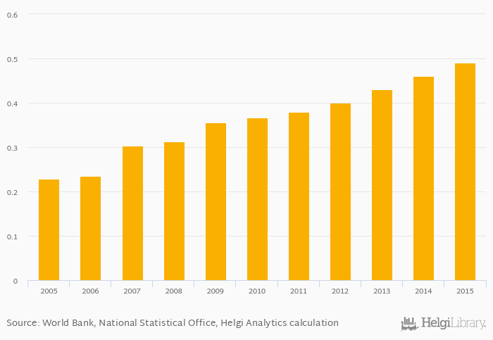 Number of motor vehicles rose 6.52% to 0.490 mil in Uganda in 2015, according to the National Statistical Office.