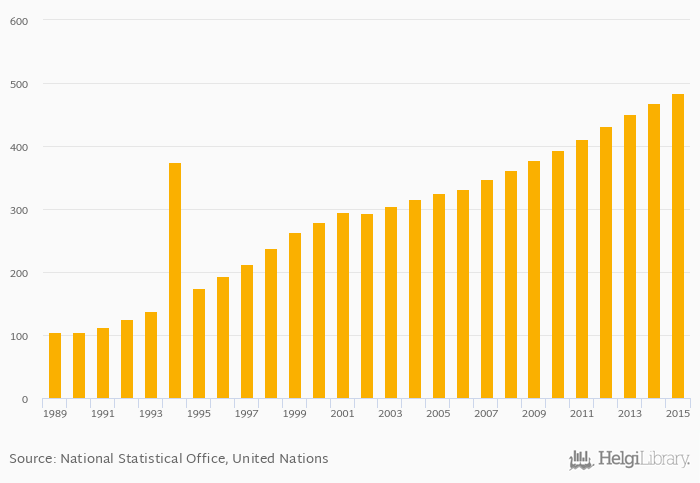 Historically, number of motorcycles in Austria reached an all time high of 485 '000 in 2015 and an all time low of 105 '000 in 1989.