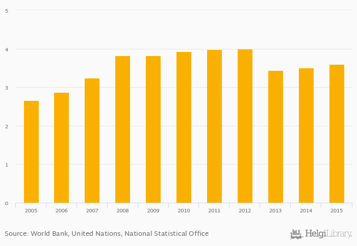 | Venezuela | mil | ... | ... | ... | ... | ... | ... | 3.44 | 3.51 | 3.60 | 3.62 | 3.64 |