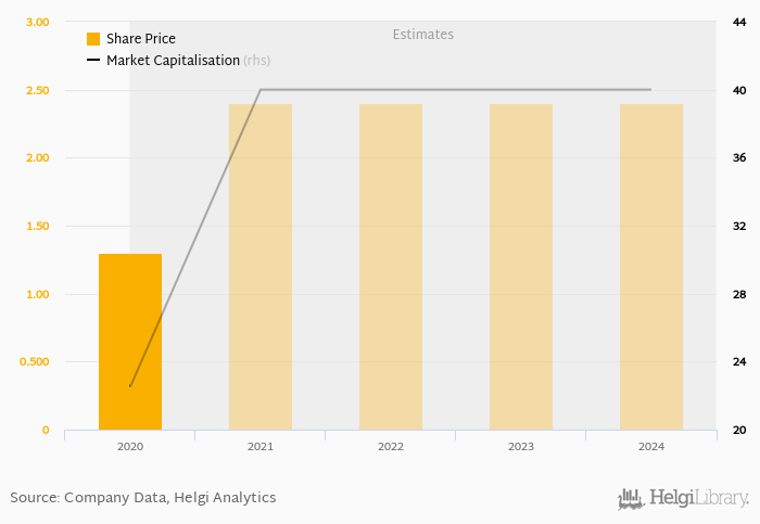 Since the end of 2015, stock has appreciated by % implying an annual average growth of % In absolute terms, the value of the company rose by USD 22.5 mil.